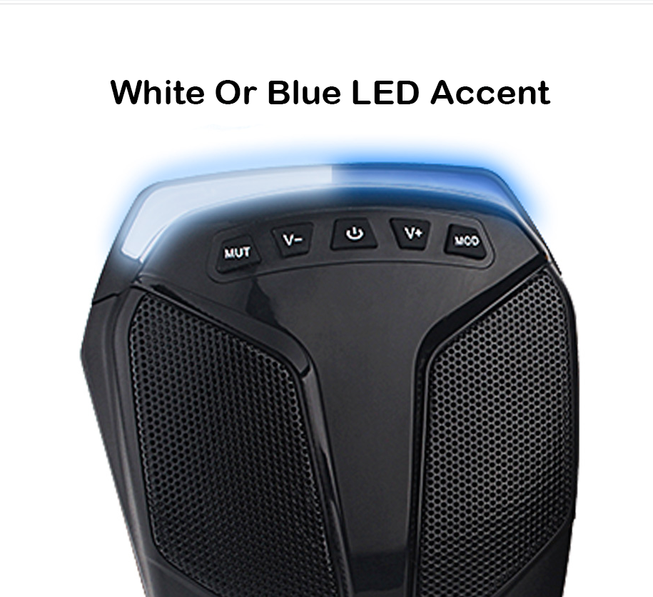 FM Radio Receiver Built in. Support USB and microSD Card MP3 files. Support USB Charging. Blue and White LEDs Light Effect. Perfect for Can-Am ATV UTV Pioneer Polaris RZR Wolverine Yamaha YXZ Kawasaki Mule 4 Wheeler Jeep GoKart Golf Cart Electric Bike Marine Boat.