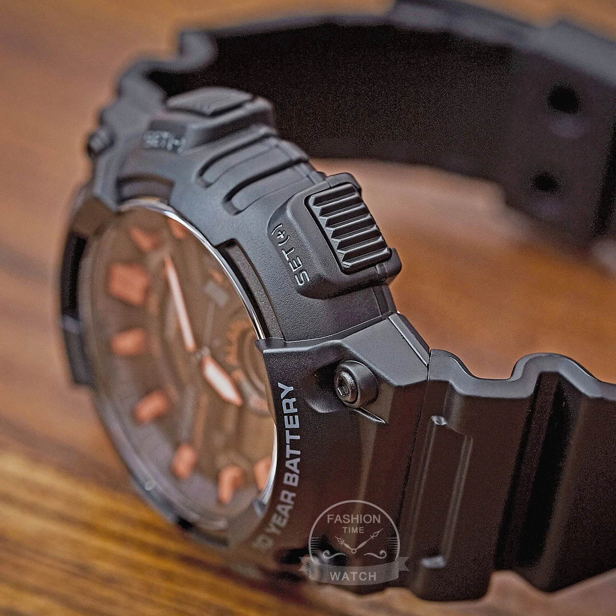 Case / bezel material: Resin Resin Band Resin Glass 100-meter water resistance Telememo Memory capacity: Up to 30 sets of data, with 8-character name and 16-digit telephone number World time Current time in 30 cities (29 time zones), daylight saving on/off second stopwatch Countdown timer 3 daily alarms Hourly time signal Full auto-calendar (to year 2099) 12/24-hour format Regular timekeeping Analog: 2 hands (hour, minute (hands move every 20 seconds)) Digital: Hour, minute, second, am/pm, month, date, day Accuracy: ±30 seconds per month Approx. battery life: 10 years on CR2025