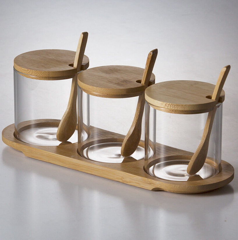 Bamboo wood base, fine texture, convenient and easy to use, the capacity of a single jar is about 400ml.