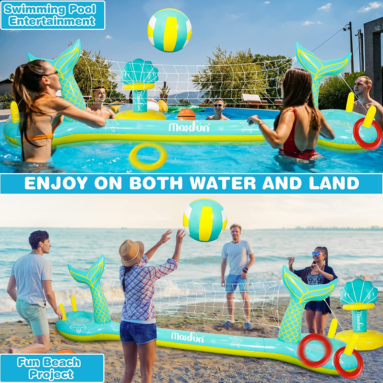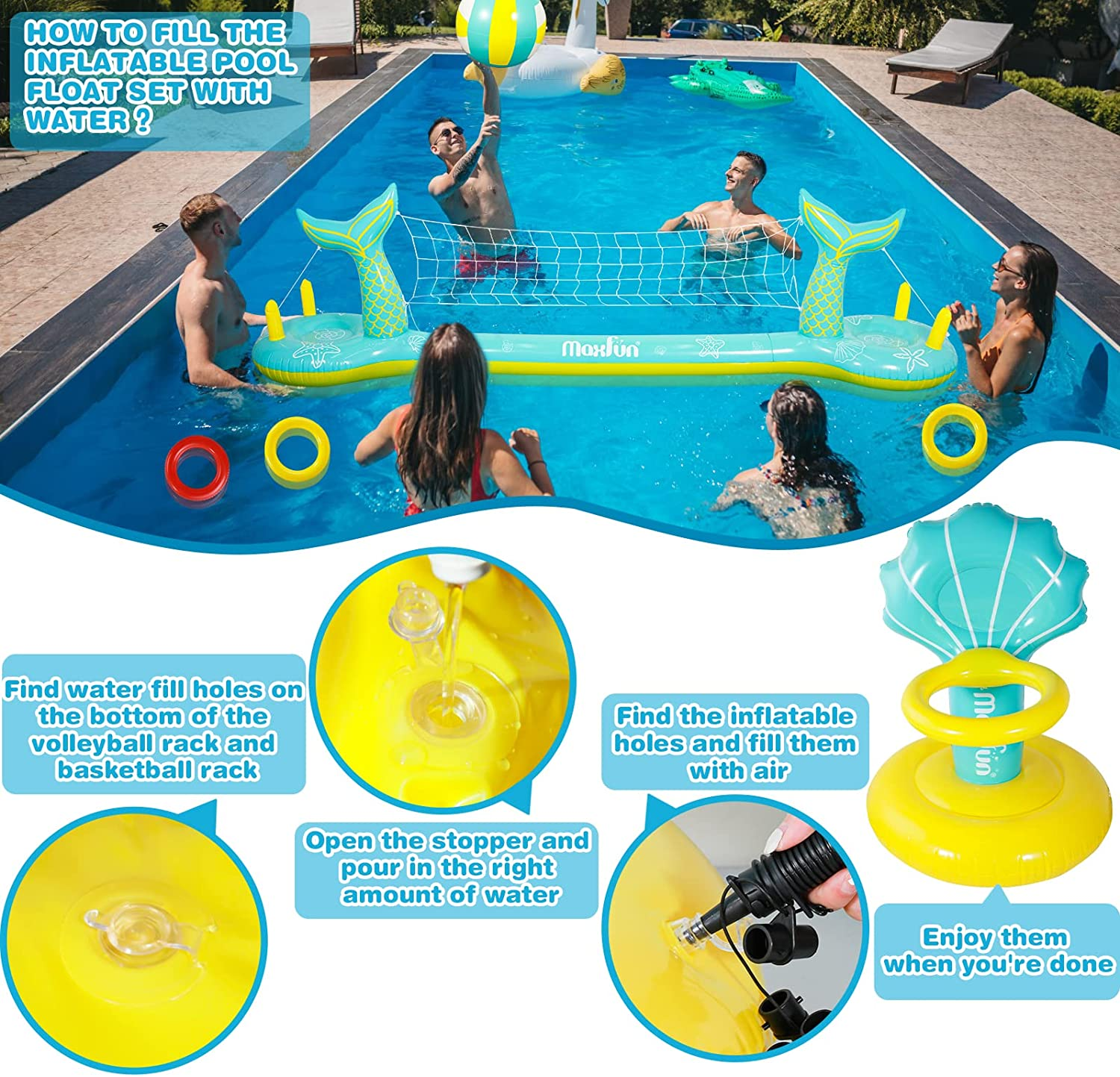 Max Fun Pool Floats Toys Game Set Floating Basketball Hoop Inflatable Ring Toss